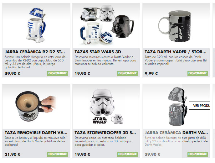 Los productos de merchandising friki dedicados a Star Wars siguen siendo la joya de la corona. Tanto en Juguetronica como en Merchandising Plaza podemos comprar artículos dedicados a una de las sagas cinematográficas más famosas de la historia. Lo mejor de todo es que podemos comprar accesorios realmente baratos y muy novedosos.